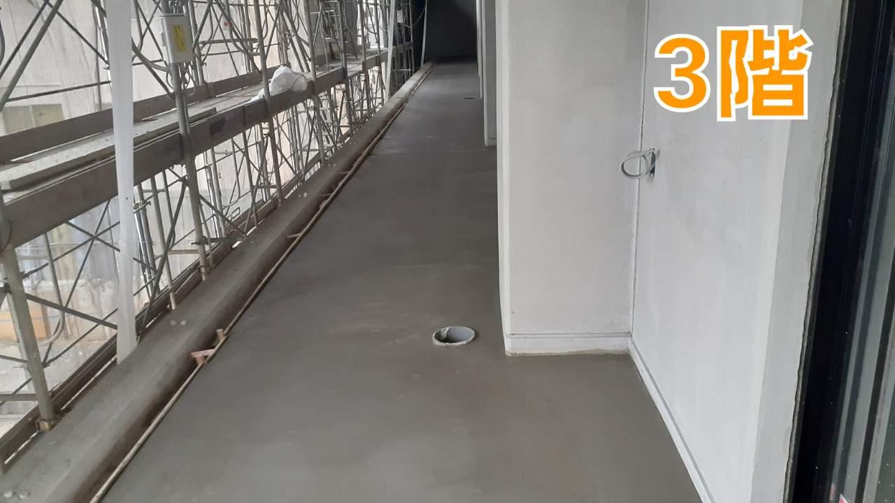 ・3階UB据付完了 ベランダ土間モルタル塗り完了